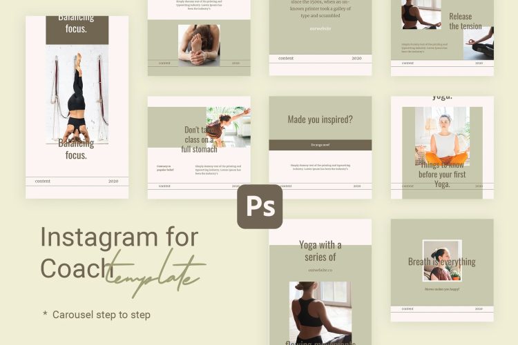 Step by Step - Instagram Carousel Templates for Yoga and Coach.