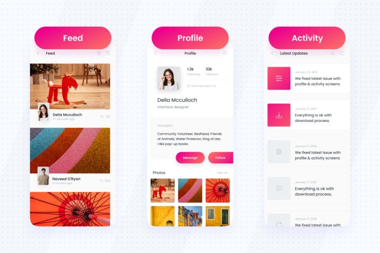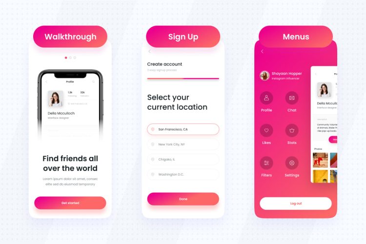 Konsep UI ini adalah kit UI seluler profesional yang membantu perusahaan rintisan, agensi, dan desainer UI/UX untuk membuat aplikasi seluler dengan lebih cepat dan mudah. Kit UI sepenuhnya dapat disesuaikan dan kompatibel dengan Adobe XD, Figma & Sketch.